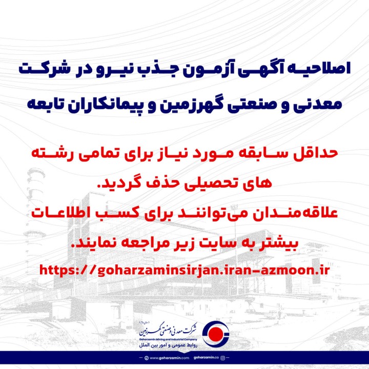 اصلاحیه آگهی آزمون جذب نیرو در شرکت معدنی و صنعتی گهرزمین و پیمانکاران تابعه