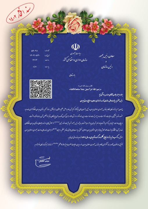 لطفی در بخشی از این لوح تاکید کرده است: «از تلاش های ارزنده جنابعالی و تمامی مدیران و کارکنان خدوم آن دستگاه که با همت والای خویش مجدانه برای اعتلای ایران اسلامی، تحقق سیاست های ابلاغی مقام معظم رهبری و اجرای برنامه های دولت جمهوری اسلامی ایران موفق به کسب رتبه برتر ارزیابی عملکرد گروه تولیدی سال 1402 شده اید، قدردانی می نمایم.»