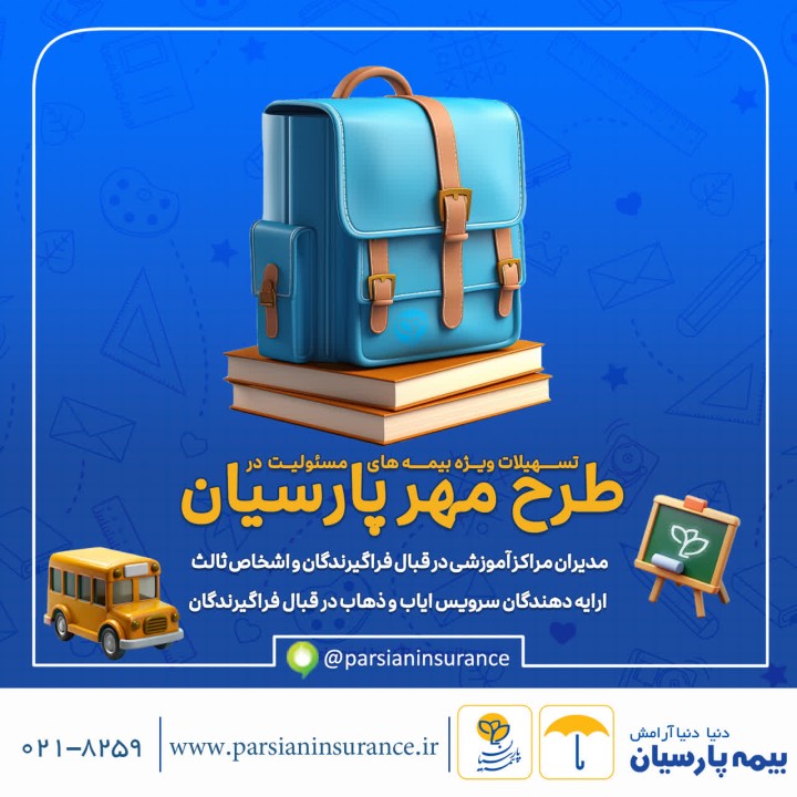 به گزارش روابط عمومی بیمه پارسیان، این شرکت به منظور حمایت از دانش‌آموزان، دانشجویان و ارایه دهندگان خدمات آموزشی، دو طرح فروش ویژه بیمه مسئولیت مدنی را برای سال تحصیلی 1404-1403 با تسهیلات مناسب ارایه کرده است.
