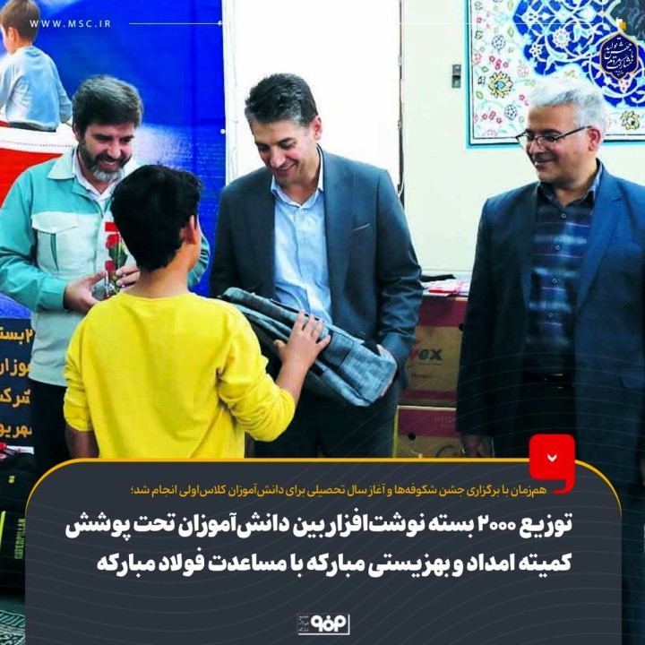 توزیع 2000 بسته لوازم‌تحریر بین دانش‌آموزان تحت پوشش کمیته امداد و بهزیستی شهرستان مبارکه با مساعدت فولاد مبارکه