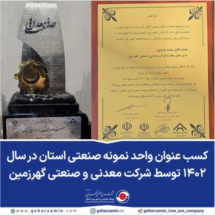 شایان ذکر است؛ که انتخاب شرکت معدنی و صنعتی گهرزمین به عنوان واحد نمونه استان، نشان از تلاشهای مستمر این شرکت در راستای ارتقای کیفیت محصولات، افزایش بهرهوری و توسعه صادرات است.