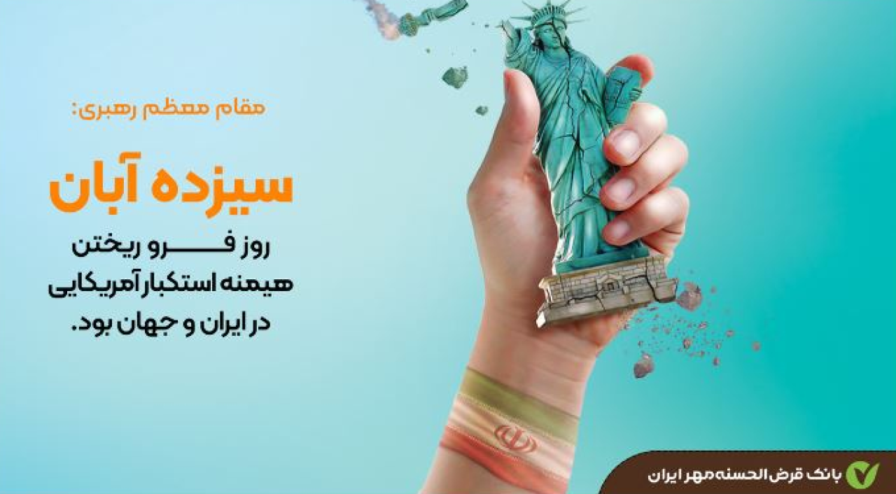 در این بین کارکنان و مدیران بانک قرضالحسنه مهر ایران نیز همگام با همه آحاد ملت، ضمن گرامیداشت روز 13 آبان، همه برنامهریزی و تلاش خود را برای قویتر شدن اقتصاد کشور به کار خواهند بست تا به سهم خود در توانمندسازی ایران اسلامی در برابر جبهه استکبار، نقشی پررنگ ایفا کنند.»